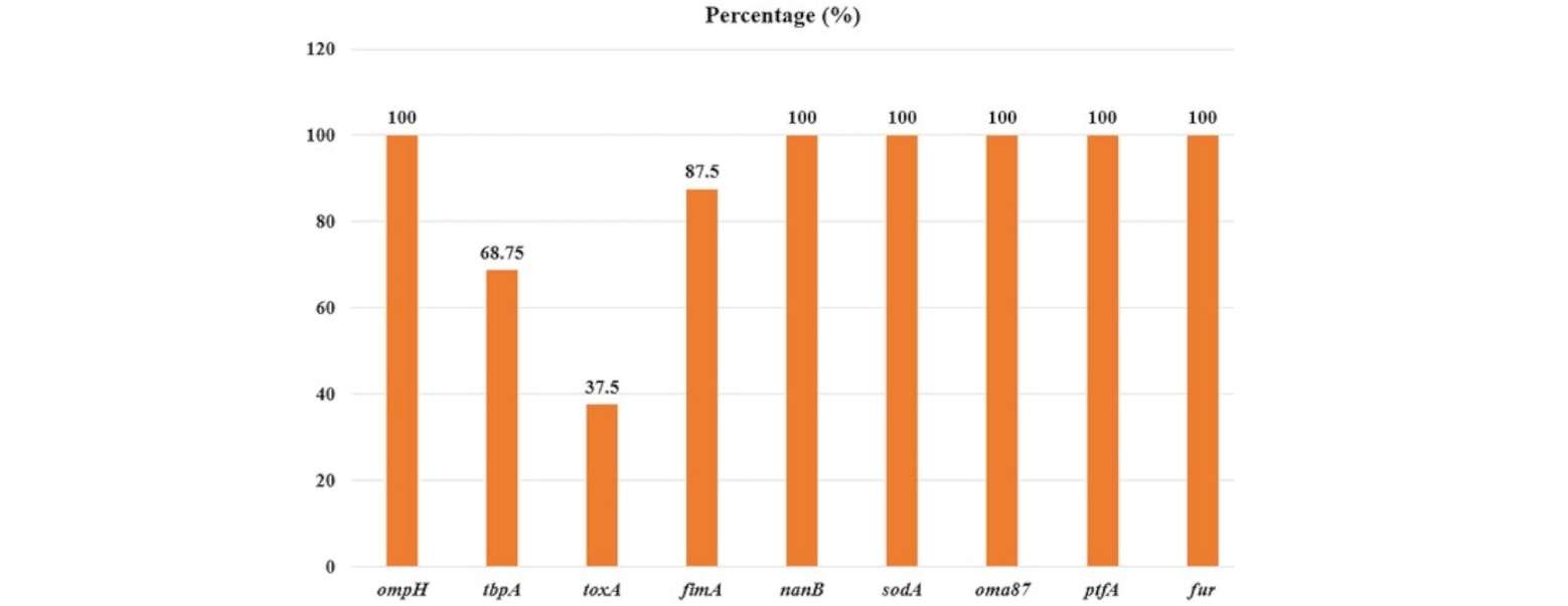 Figure. 8. Prevalence of virulence genes among all the P. multocida isolates in the study.