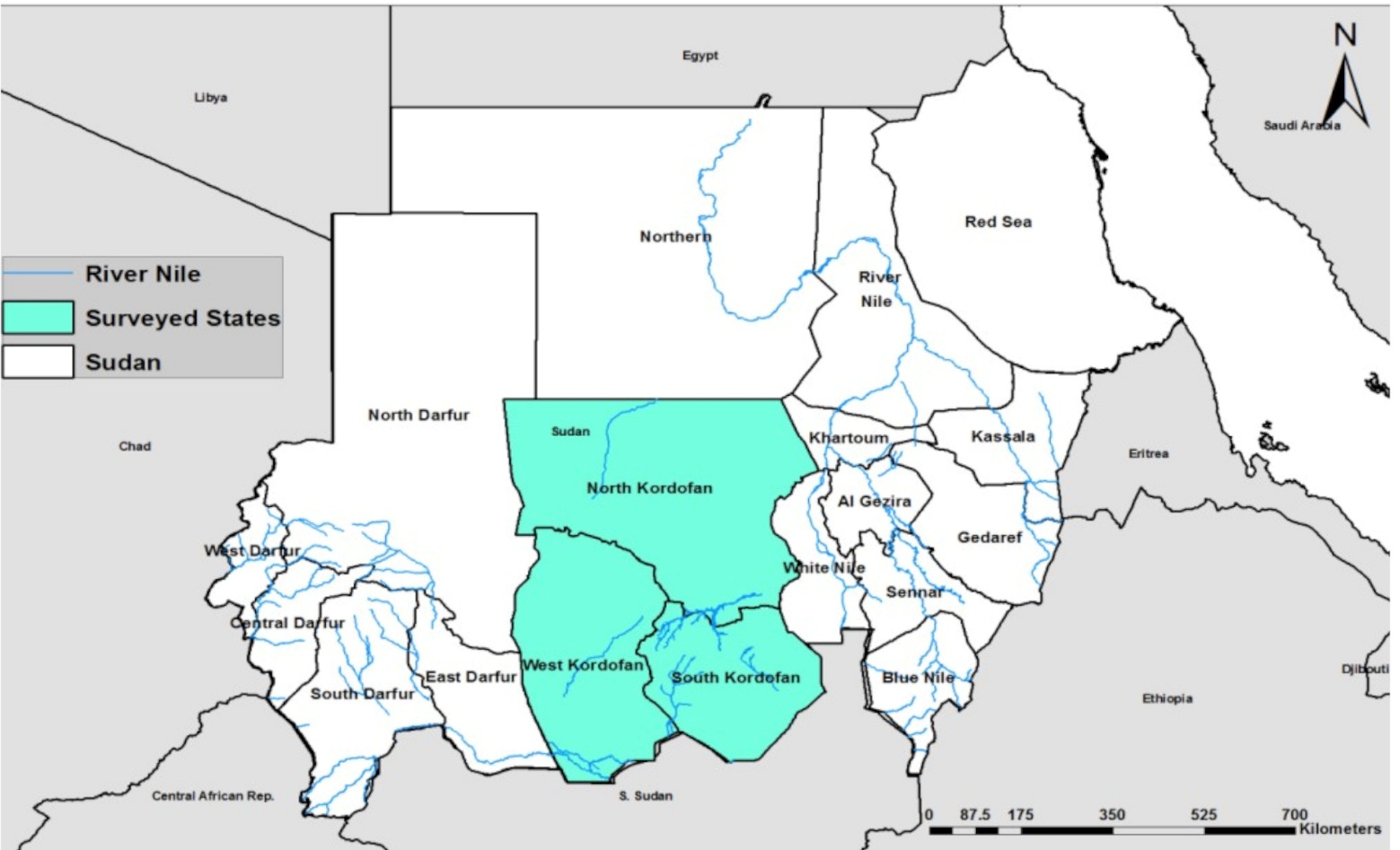 Figure. 1. Kordofan States (North, West and South).