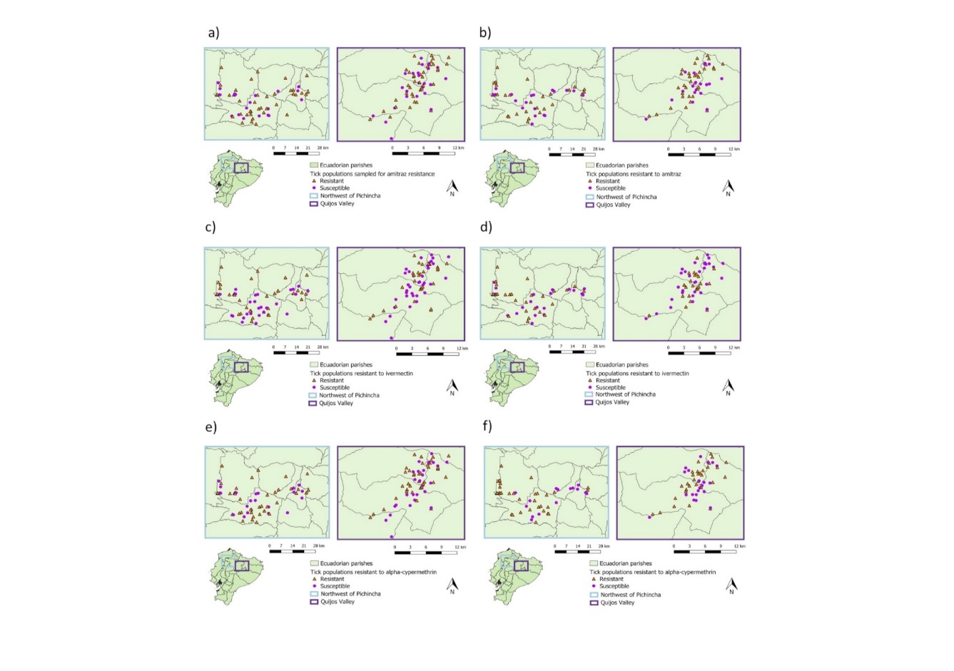 Pérez-Otáñez X., Vanwambeke S.O., Orozco-Alvarez G., Arciniegas-Ortega S., Ron-Garrido L. & Rodríguez-Hidalgo R. 2023. Widespread acaricide resistance and multi-resistance in Rhipicephalus microplus in Ecuador and associated environmental and management risk factors. Ticks Tick Borne Dis, 15, 102274.
