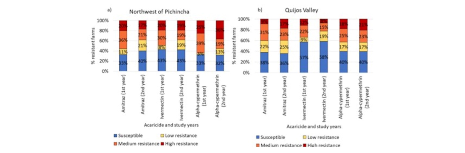Drivers and evolution of acaricide resistance and multi-resistance in two Ecuador's subtropical livestock farming areas