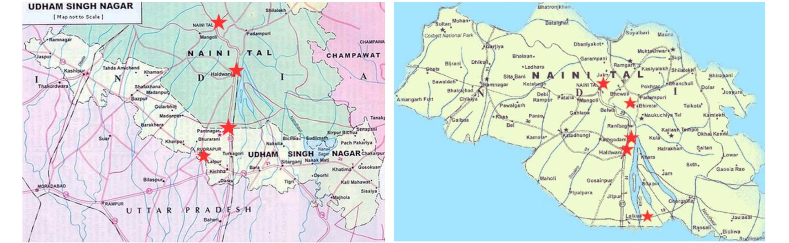 Figure. 1. Maps showing the area of sample collection with orange star marks.
