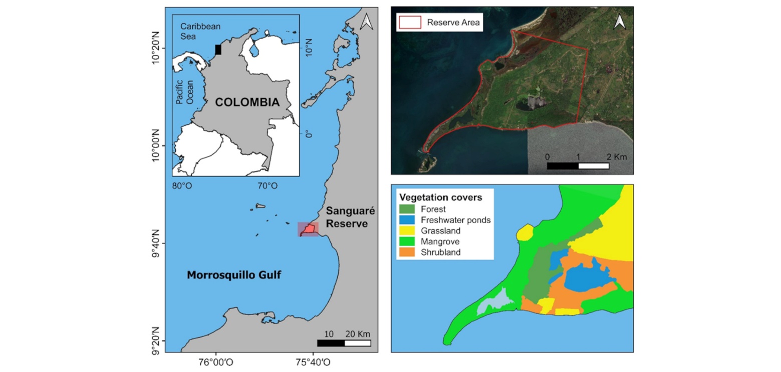 Figure. 1. Location of Study site Sanguaré Natural Reserve at Colombian Caribbean coast.