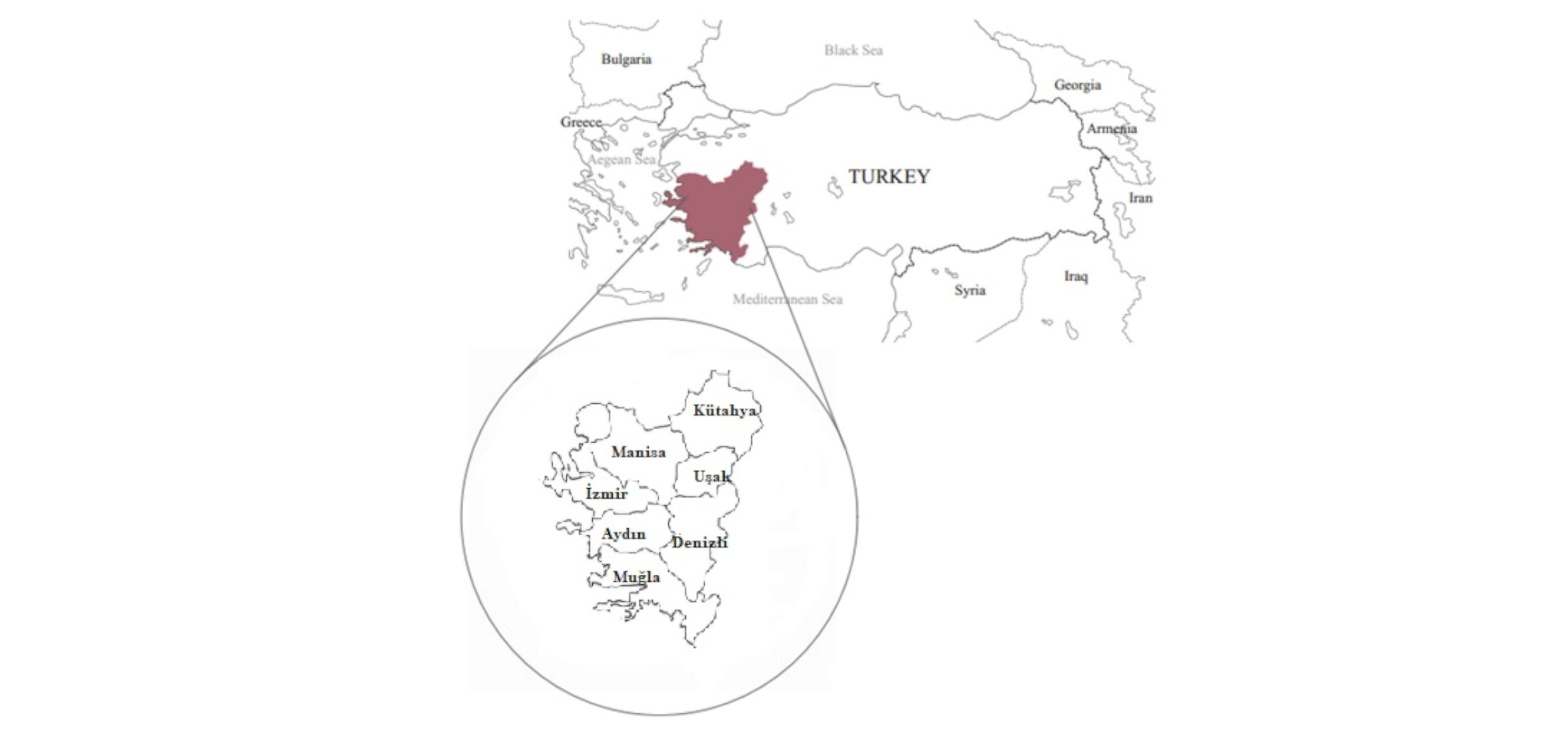 Figure. 1. Cities in western Türkiye from which samples were collected for the study.