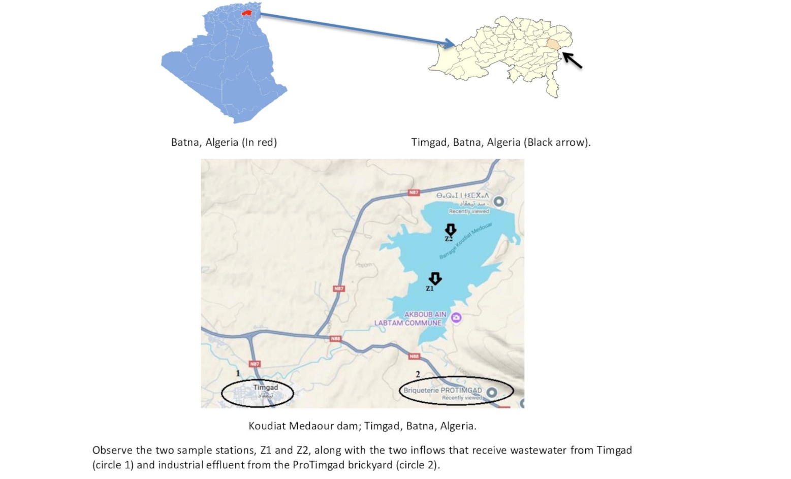 Our study was carried out at the Koudiat Medaour reservoir, a gravity dam in the Oued Chemora valley. It belongs to the Beni-Haroun complex system, with a surface area of 590 km². It is located about 35 km from Batna, in northeastern Algeria, at a longitude of 06°30'32.61'' E and latitude of 35°31'27.03 '' N. Fish and water were sampled during July and September 2024, from two zones, Z1 and Z2, where fishing activity is significant, to have a diversity of sampling (Figure 1). In fact, this is a retrospective study.
