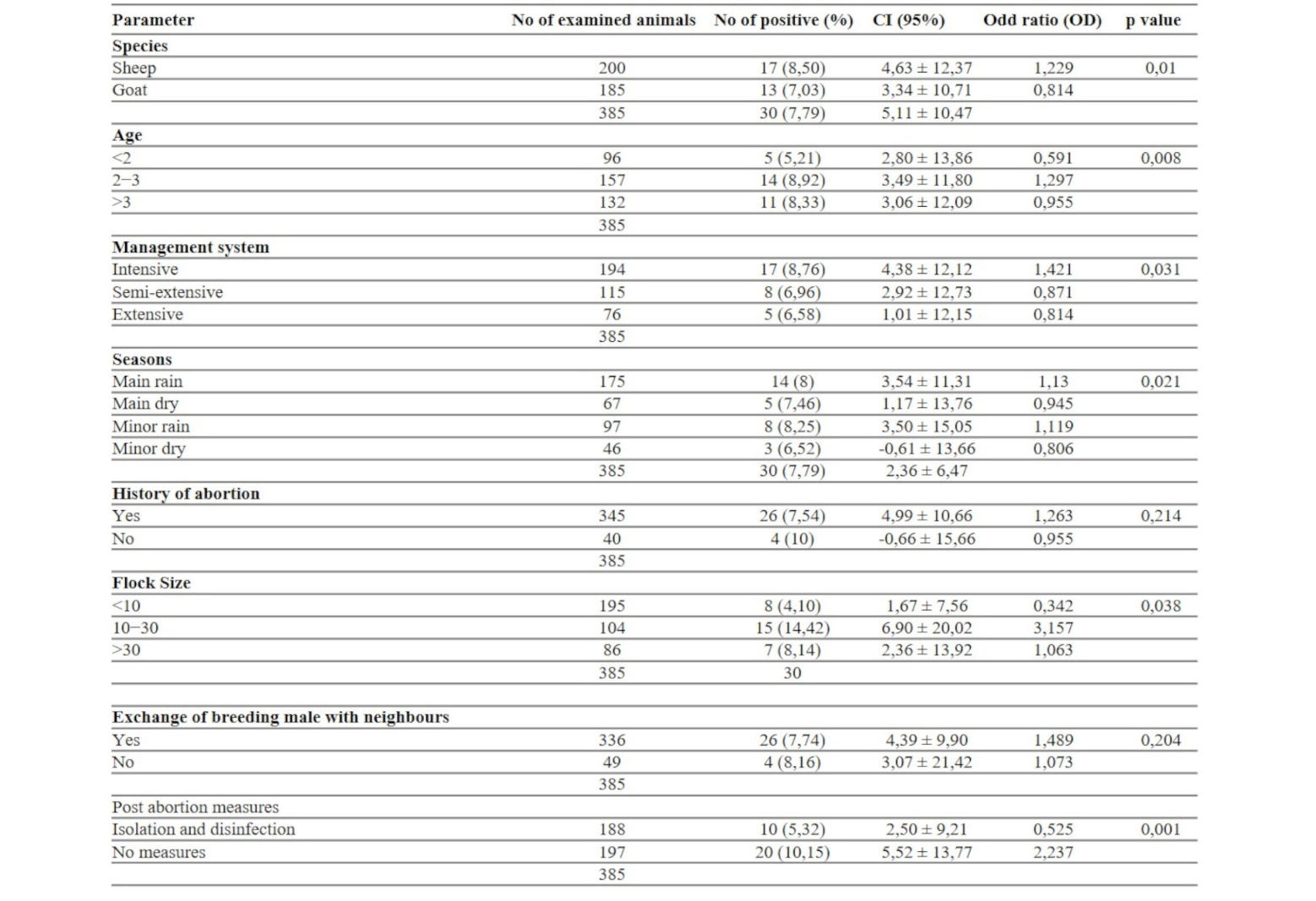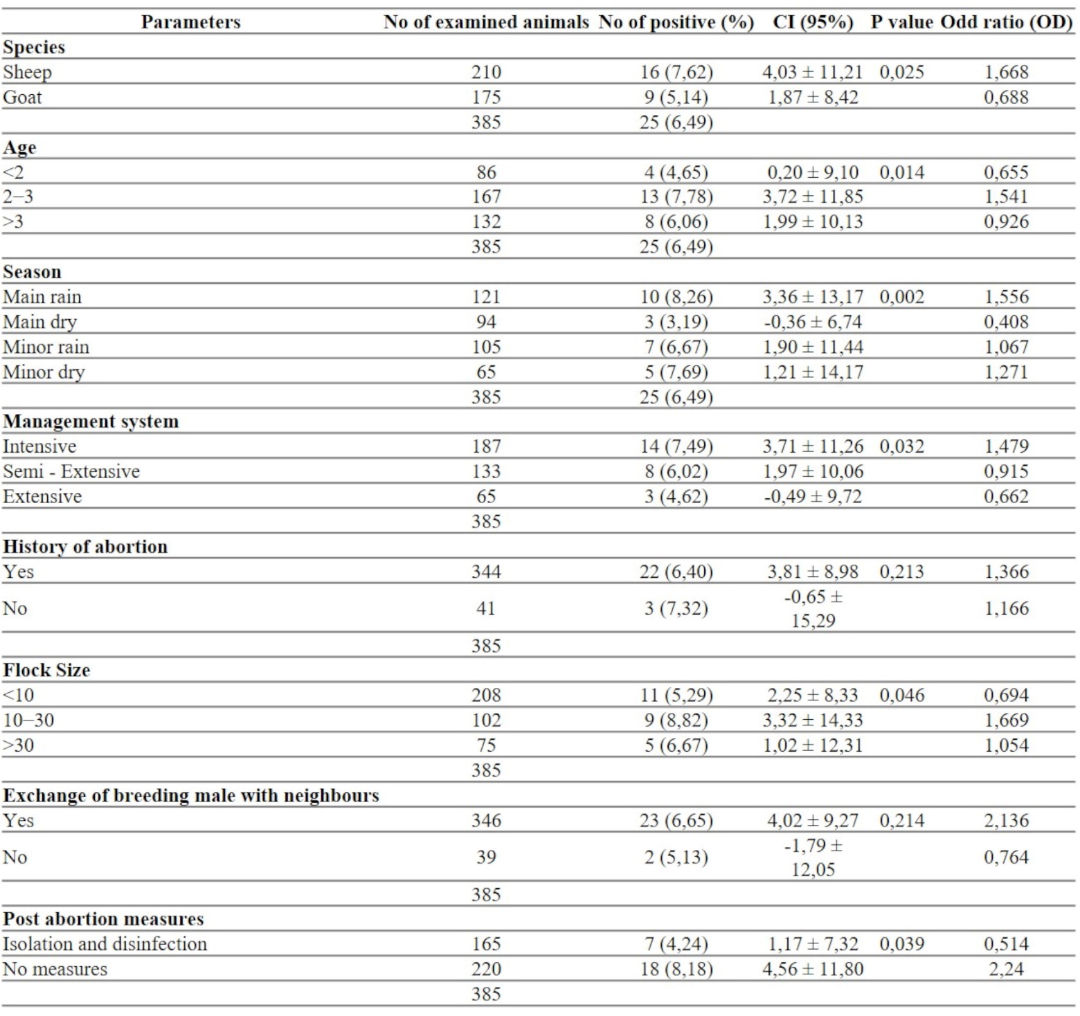 Table. V. Variables associated with C. abortus infection in small ruminants of Pole 2. * The result is significant at p < 0,05.