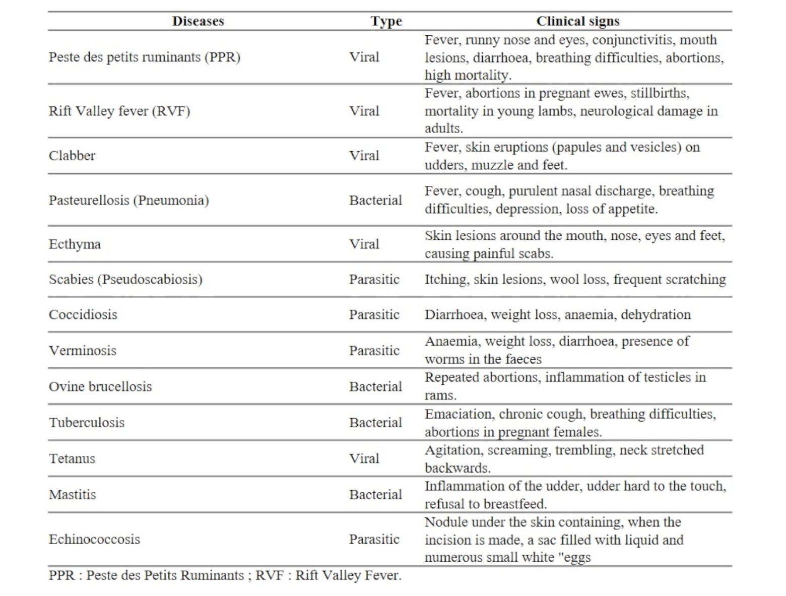 Main symptoms and suspected diseases in small ruminant reported by farmers
