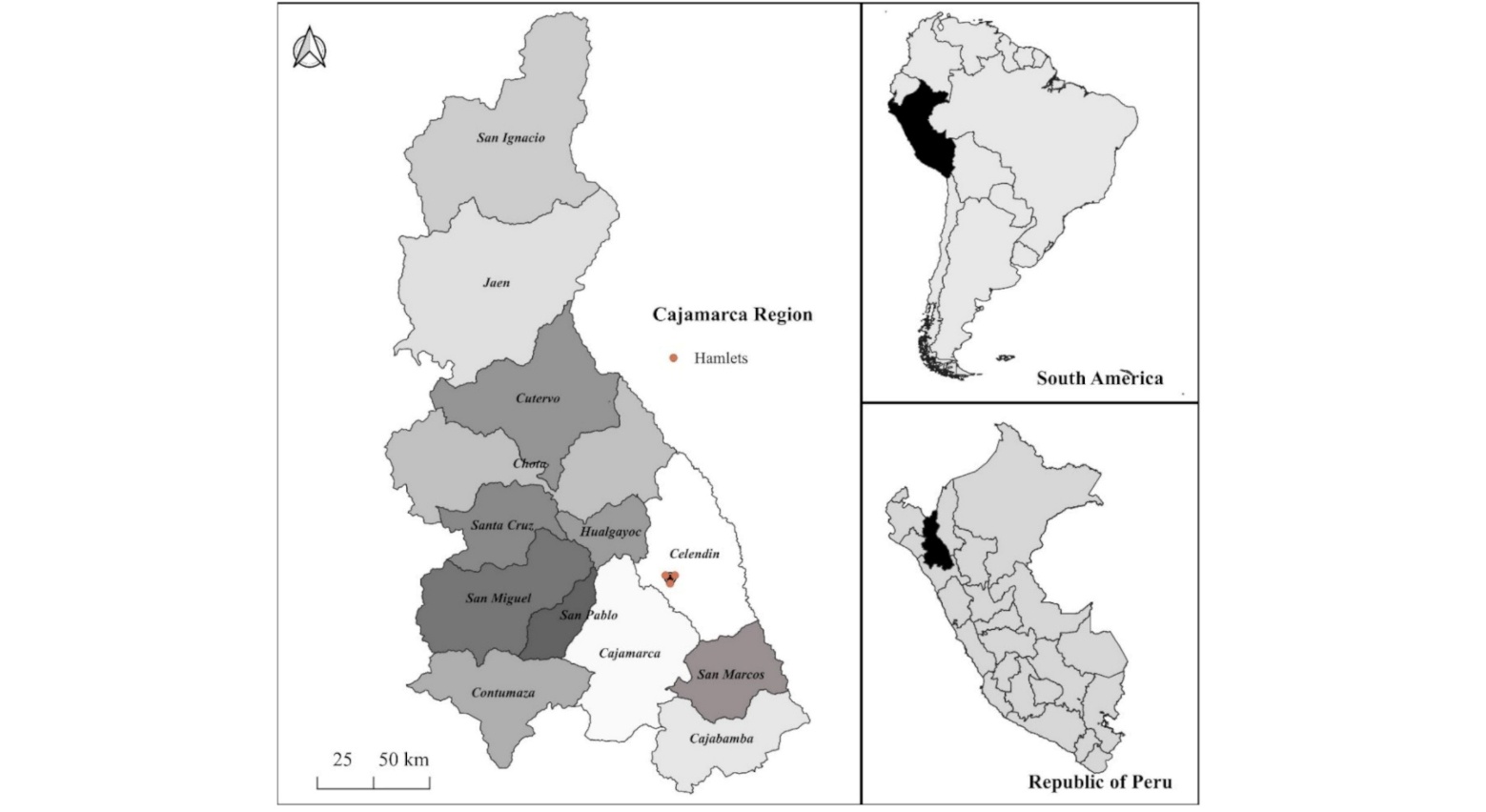Figure. 1. Geographical location of the hamlets in the Celendín province, Cajamarca - Peru.