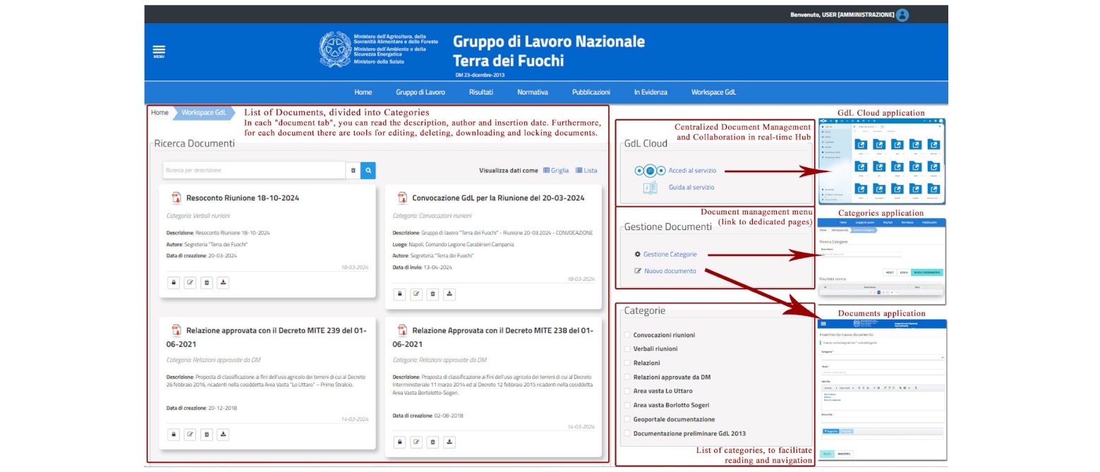 Figure. 9 - Layout of ‘Workspace GdL’ Page and Document Management Application.