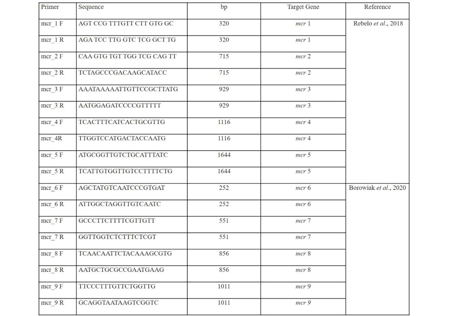 Table. V. Primers used for multiplex PCR for detecting mcr genes.