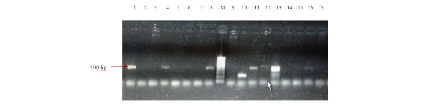 Figure. 4. PCR detection of Campylobacter jejuni; Lane M- Ladder; N- Negative Control; 1- Postive control; 2-19- suspected C. jejuni.
