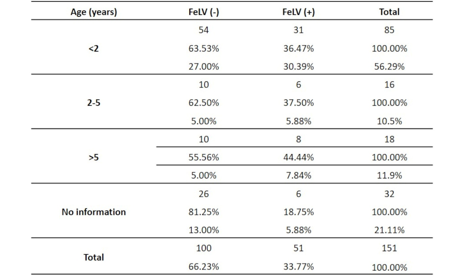 Table. I. Percentages of FeLV infection by age in domestic felines.