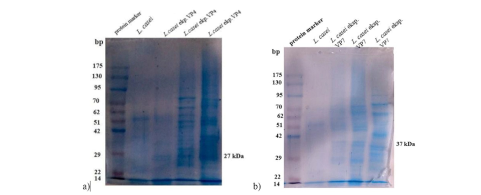 SDS-PAGE Visualization of Expression of VP4 and VP7 Proteins inL. casei