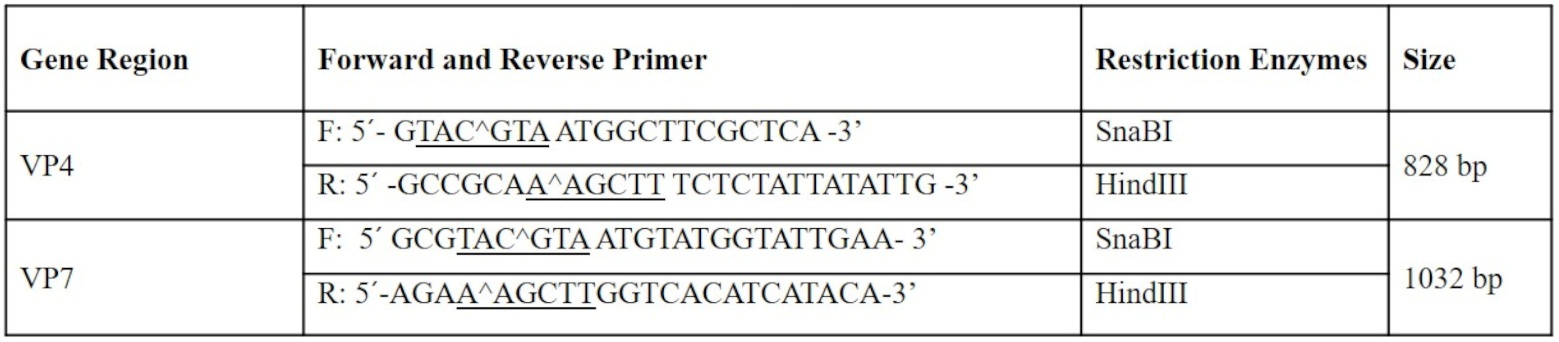 Table. I. Primer sequences and restriction enzymes used for VP4 and VP7 gene amplification.