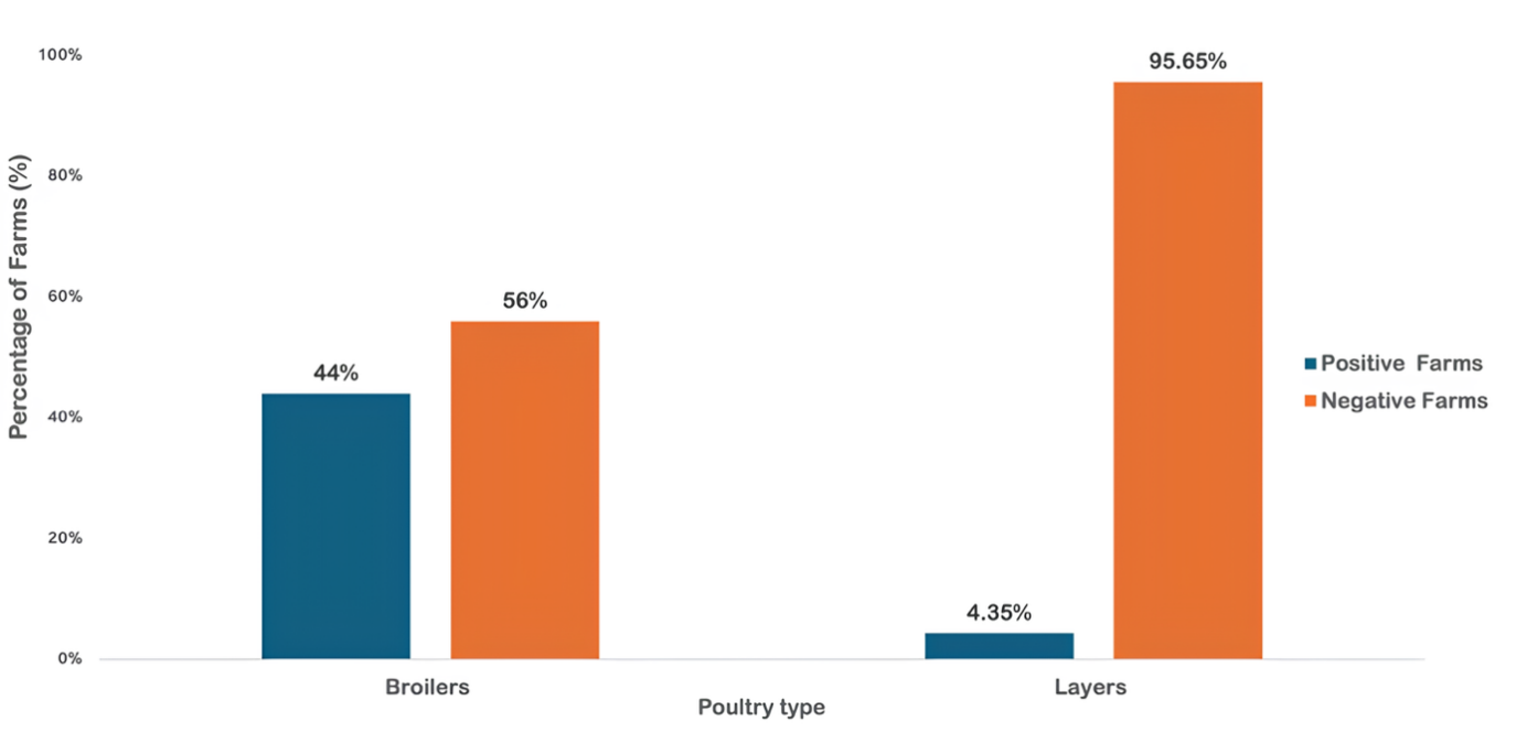 Figure. 1. Distribution of H9N2 Avian Influenza based on the type of poultry across Farms in the Dakar and Thiès Regions of Senegal in 2024.