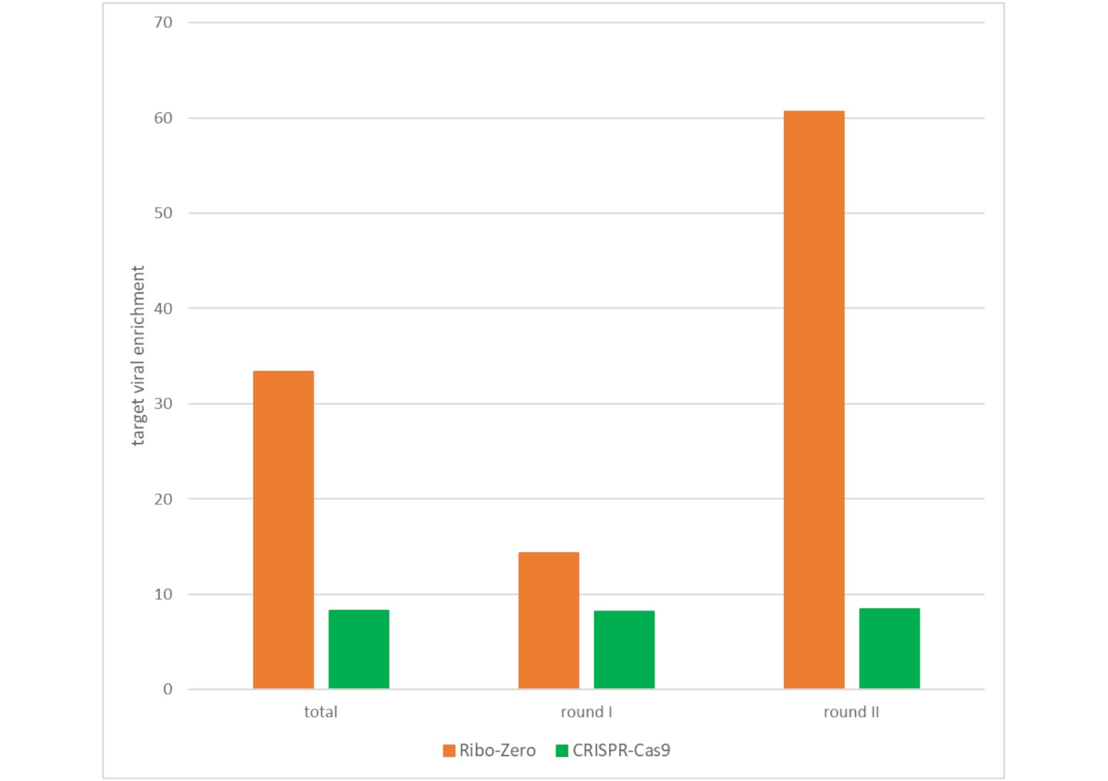 Figure. 4. Average enrichment of target viral content calculated per round and across all samples.